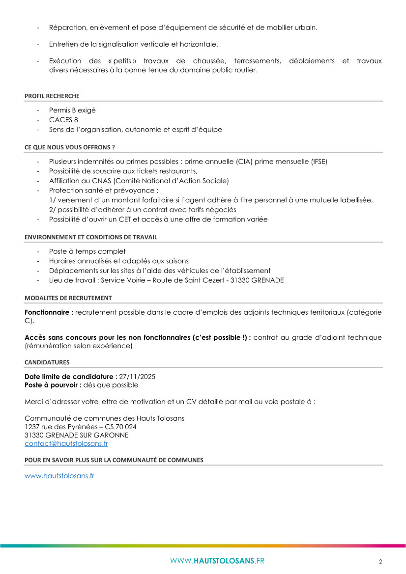 Offre publiée également sur le site des Hauts Tolosans : https://www.hautstolosans.fr/nous-connaitre/nous-recrutons/